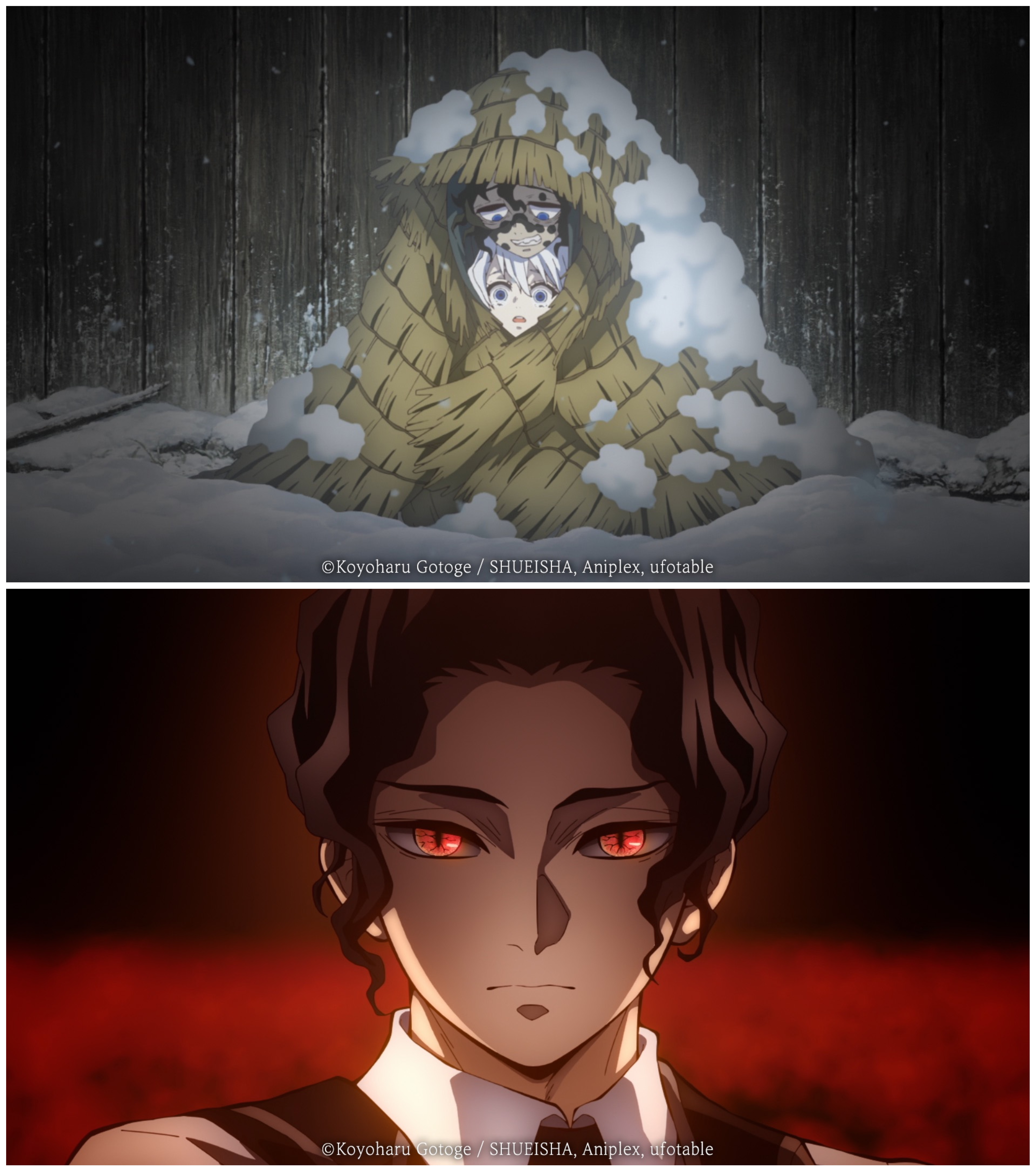 강력한 상현 6 혈귀 남매 규타로 & 다키와의 전투 끝에 탄지로 일행은 궁지에 몰린다.