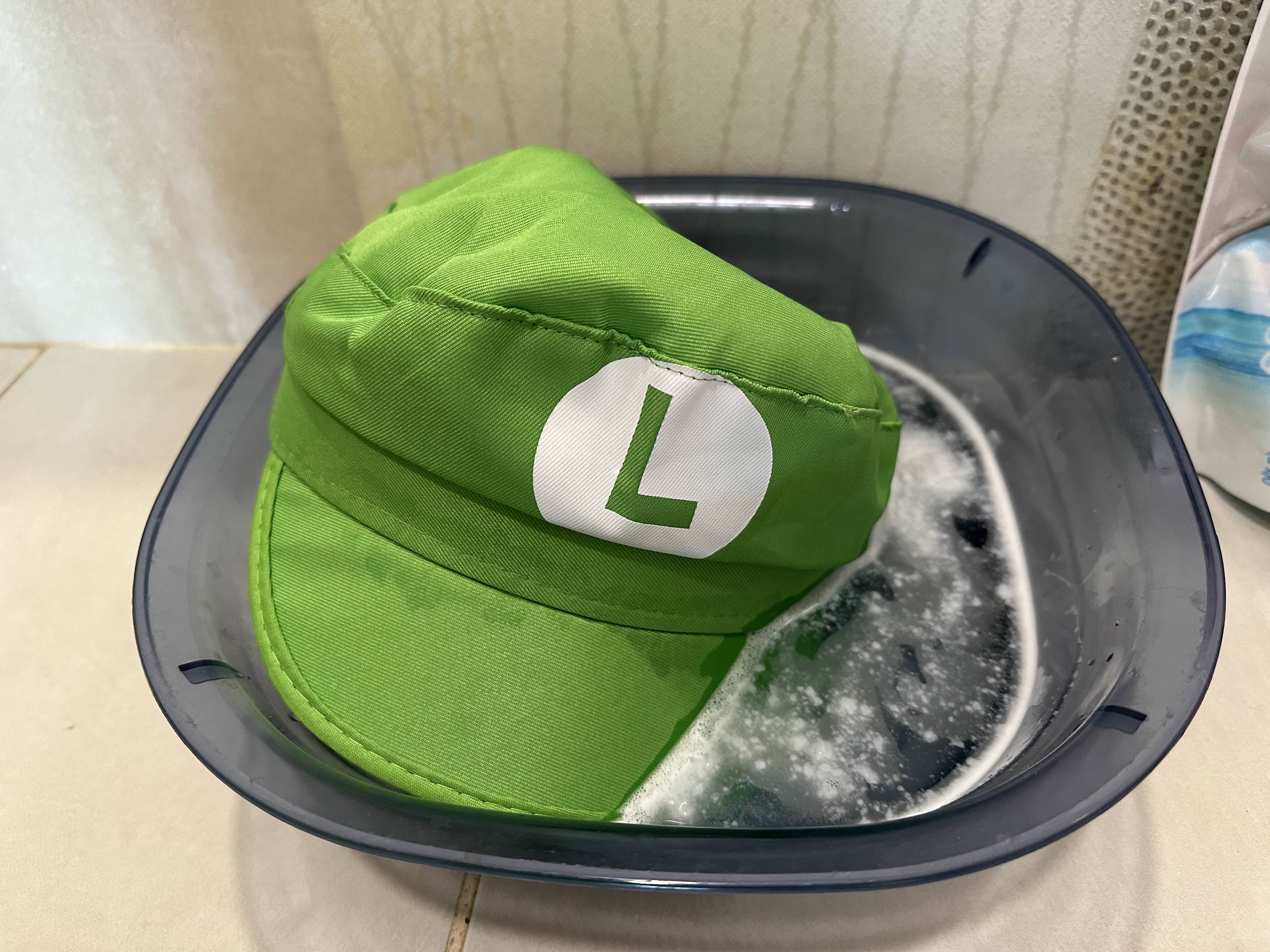 모자를 30분 정도 담궈 놓는다.