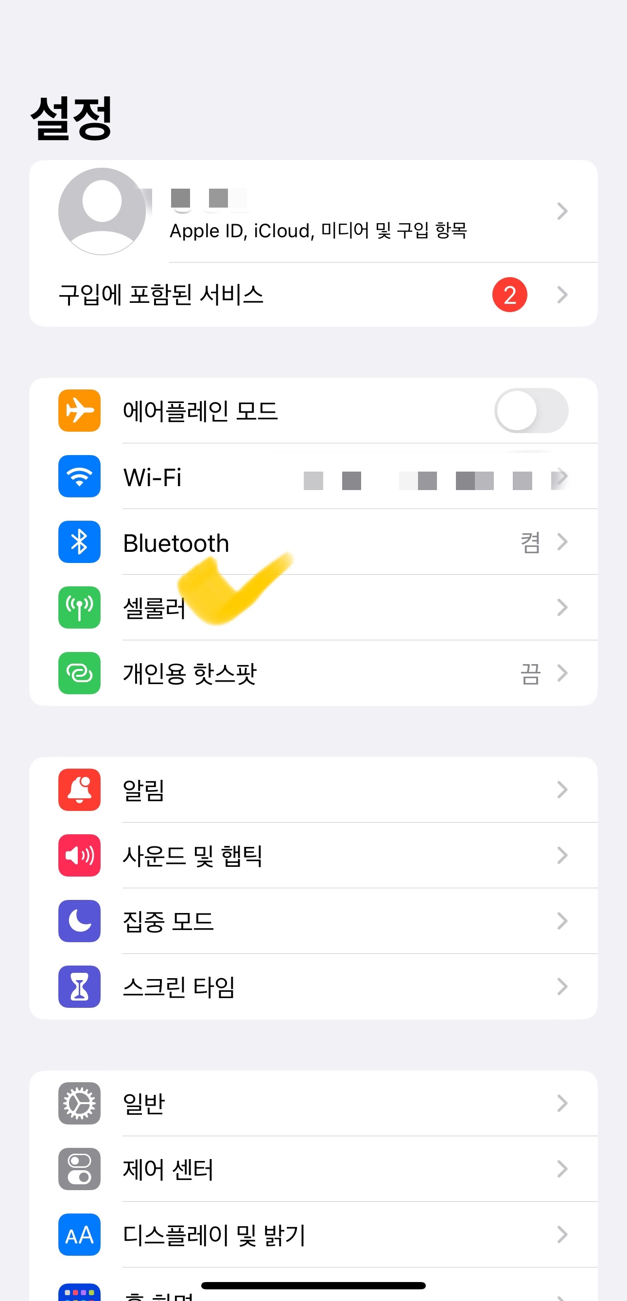 2. 그 다음엔 ‘셀룰러’로 들어간다.