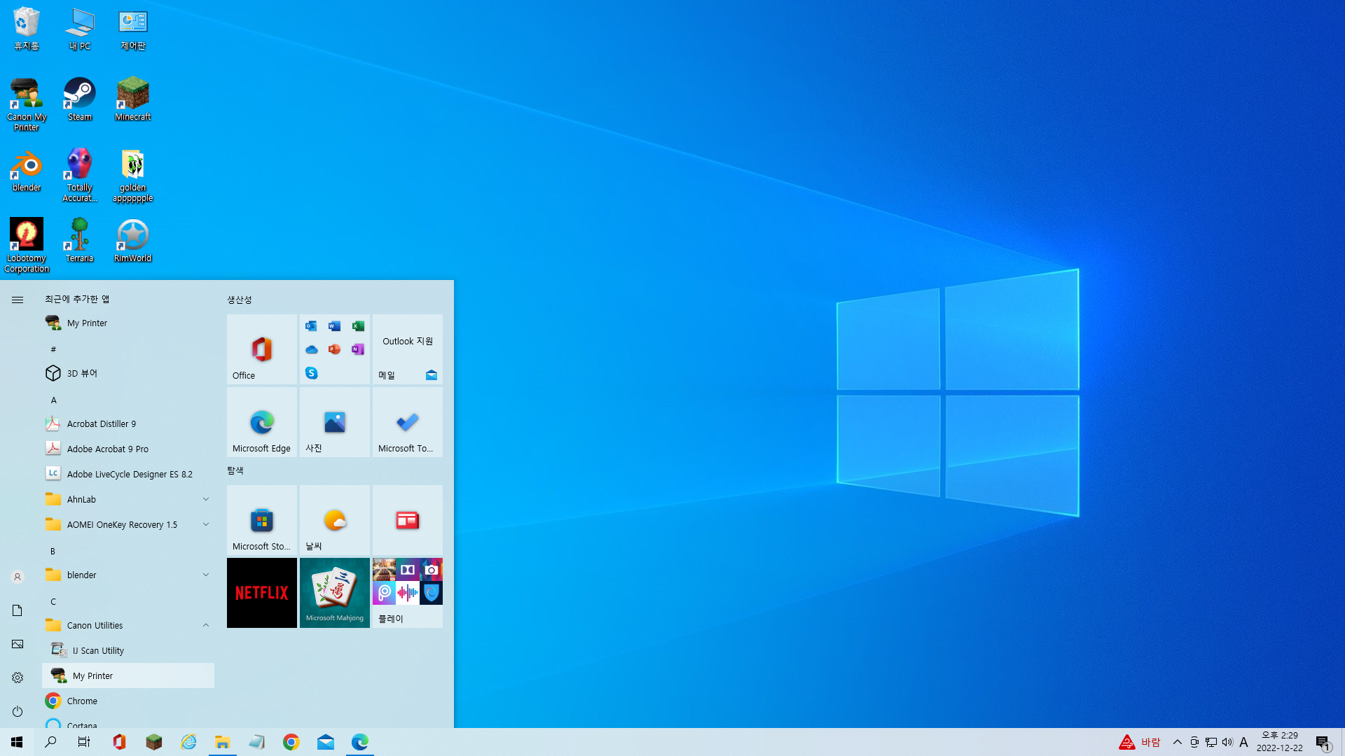 1. 시작 ➡️ 캐논 유틸리티 ➡️ 마이프린터