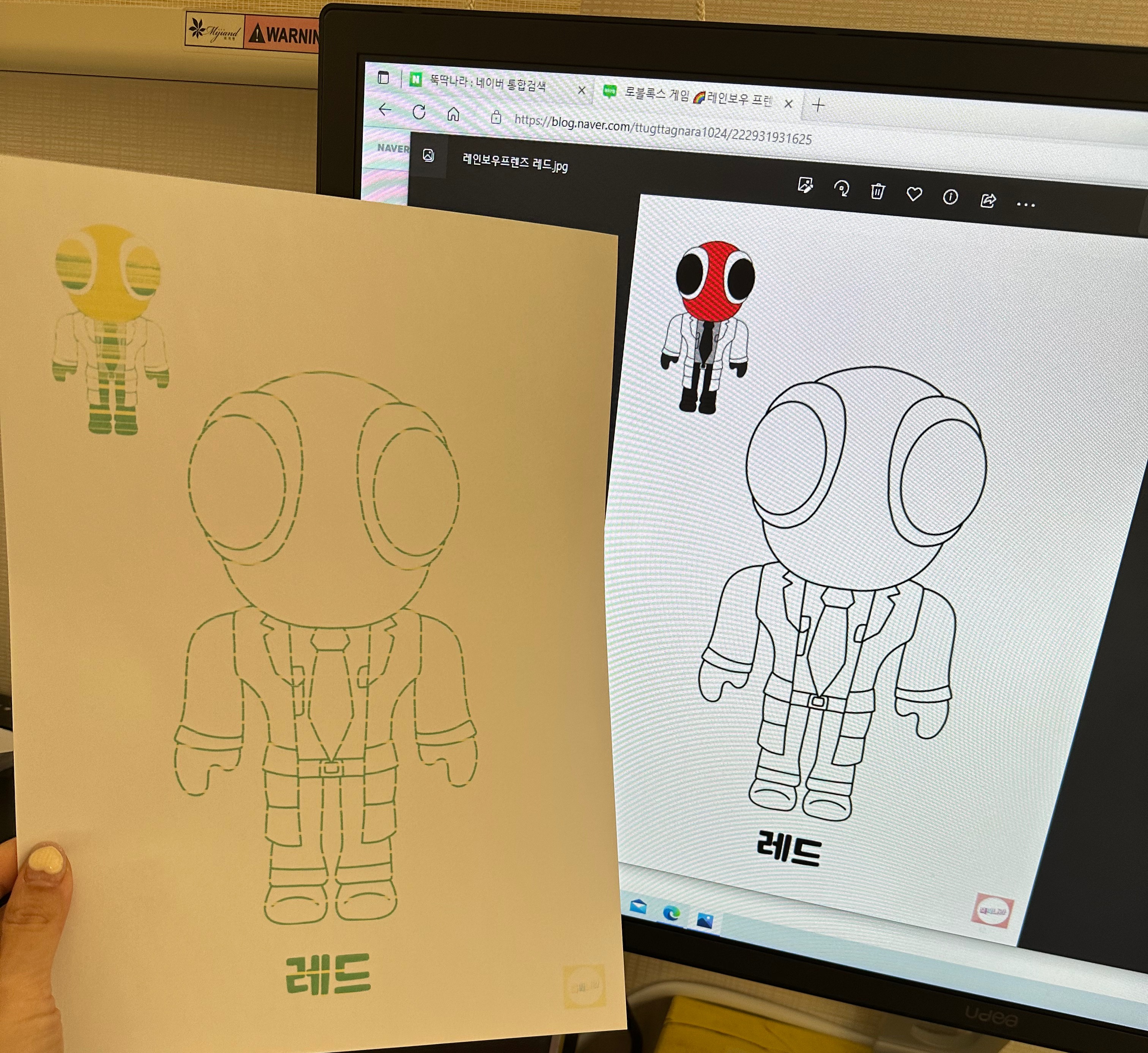 막둥이가 독감에 걸려가지고 집에서 격리중이라 심심해해서 좋아사는 로블록스 레인보우 프렌즈 캐릭터를 프린트 해줄려고 했어요. 그런데 지난 여름방학 때 마지막으로 프린트 하고 안했더니 또 잉크 노즐이 막혀서 노즐 청소를 해야하네요.