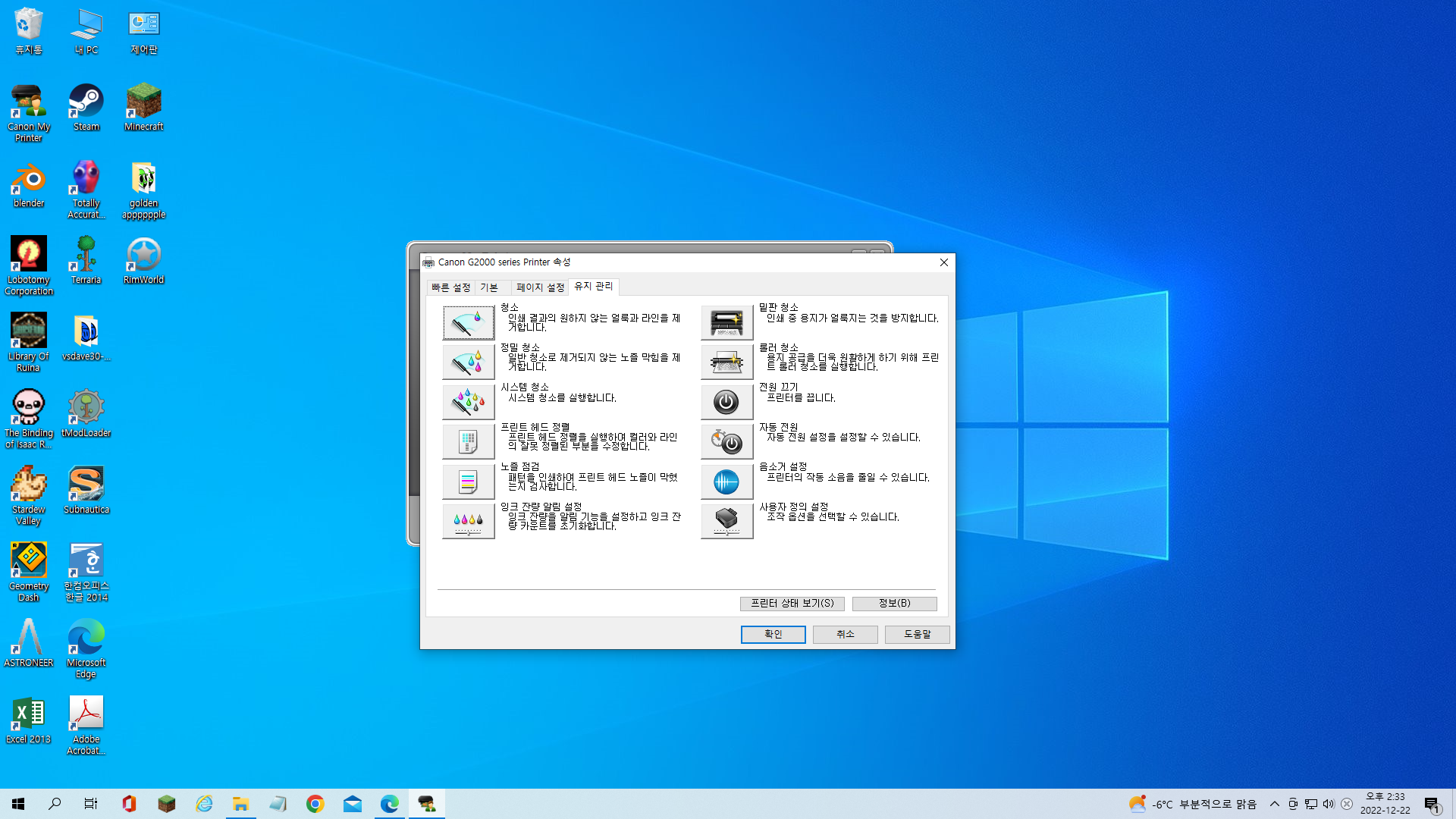 ➡️ 프린터세팅스 ➡️ 유지관리