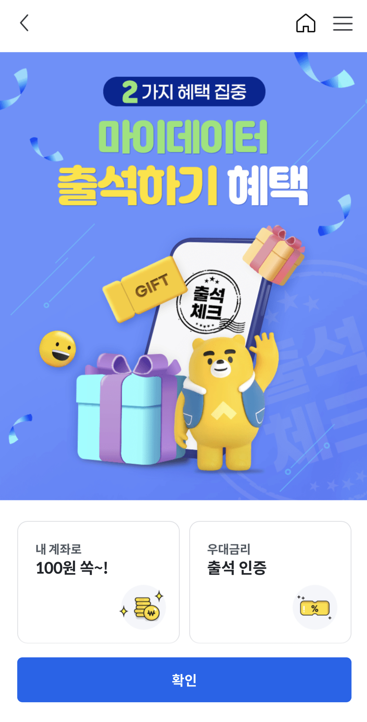 광주은행 앱을 깔고 계좌 개설을 하면 3,000원 입금을 해주고요. 매일 출석체크를 하면 출첵할 때마다 100원을 입금해 주니 꼭 해보세요.