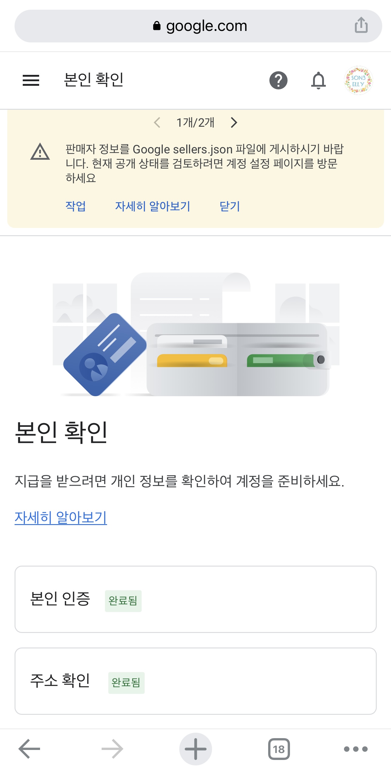 제대로 인증되면 요렇게 <완료됨> 표시가 뜬답니다.