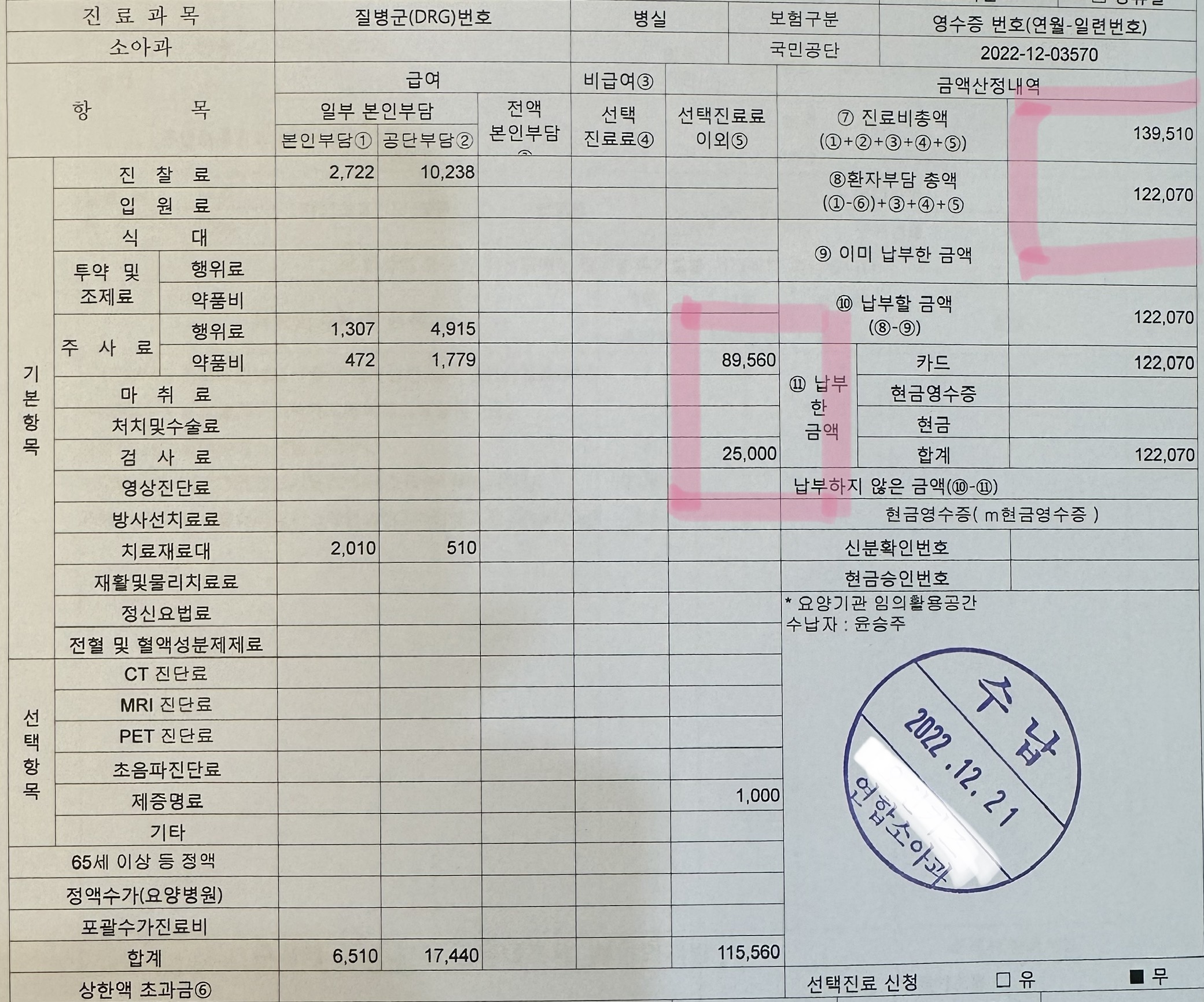 그래서 검사비 25,000원이 나왔네요.