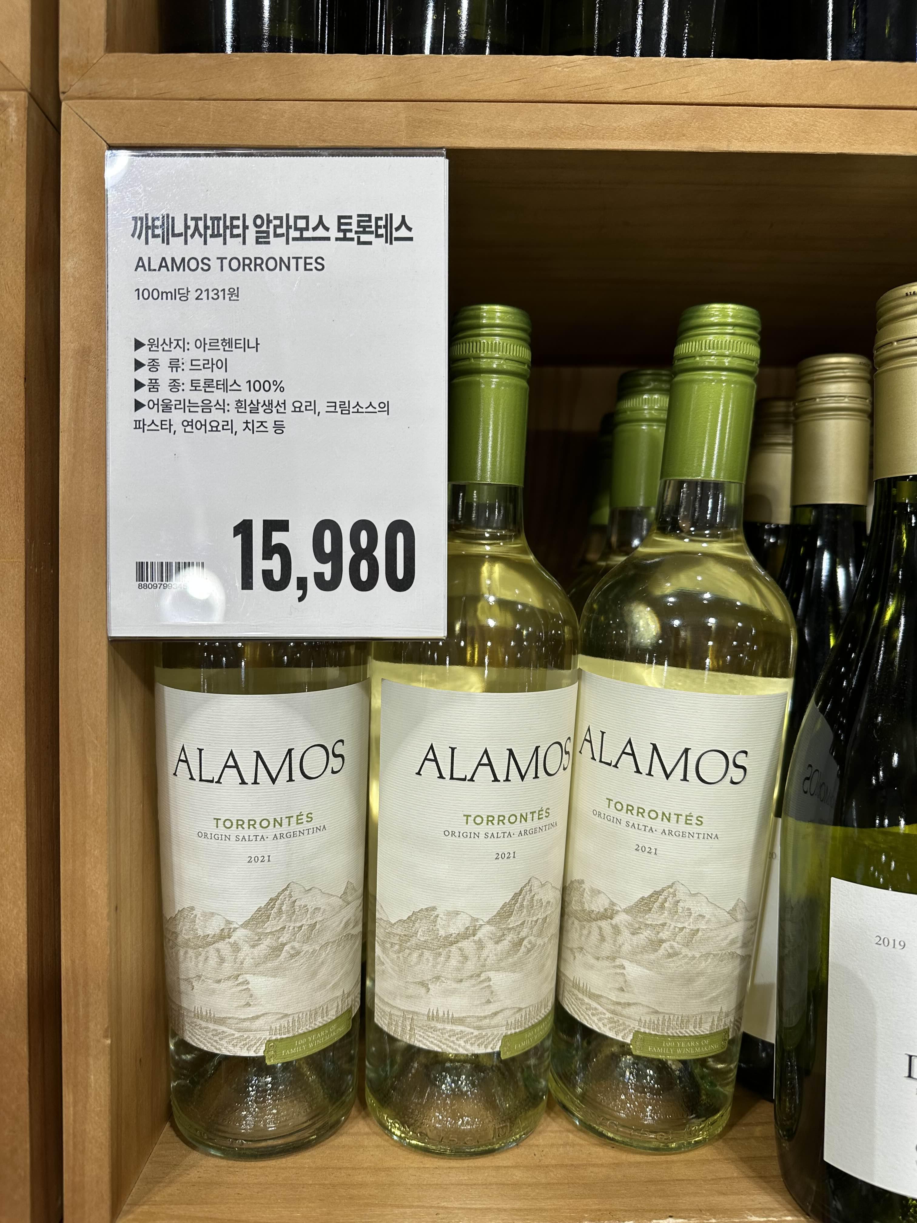 예전엔 롯데쪽에서만 수입해서 그랬는지 다시 사먹을려고 해도 알라모스 토론테스가 다른 매장에는 잘 없어서 롯데백화점에 다시 갔는데 또 품절이라 예약해 놓고 10병 사다놨던 적도 있었네요.