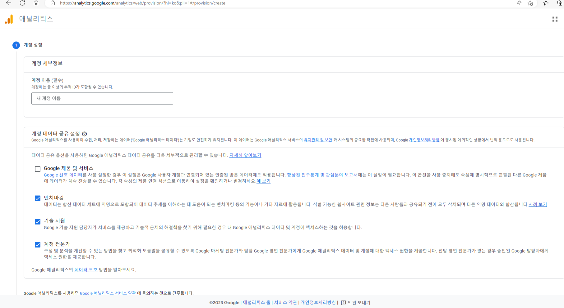 제일 처음 계정이름을 작성하게 되어있어요. 계정 이름은 내가 원하는 이름으로 설정하시면 됩니다.