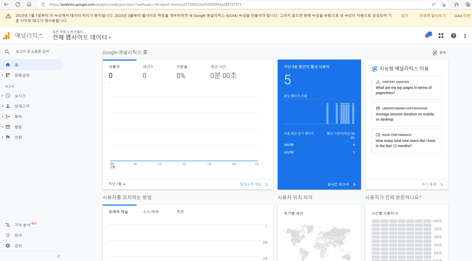 2~3일 정도 지나면 제대로 사용자수 이탈률 등이 제대로 반영된다고 해요.
