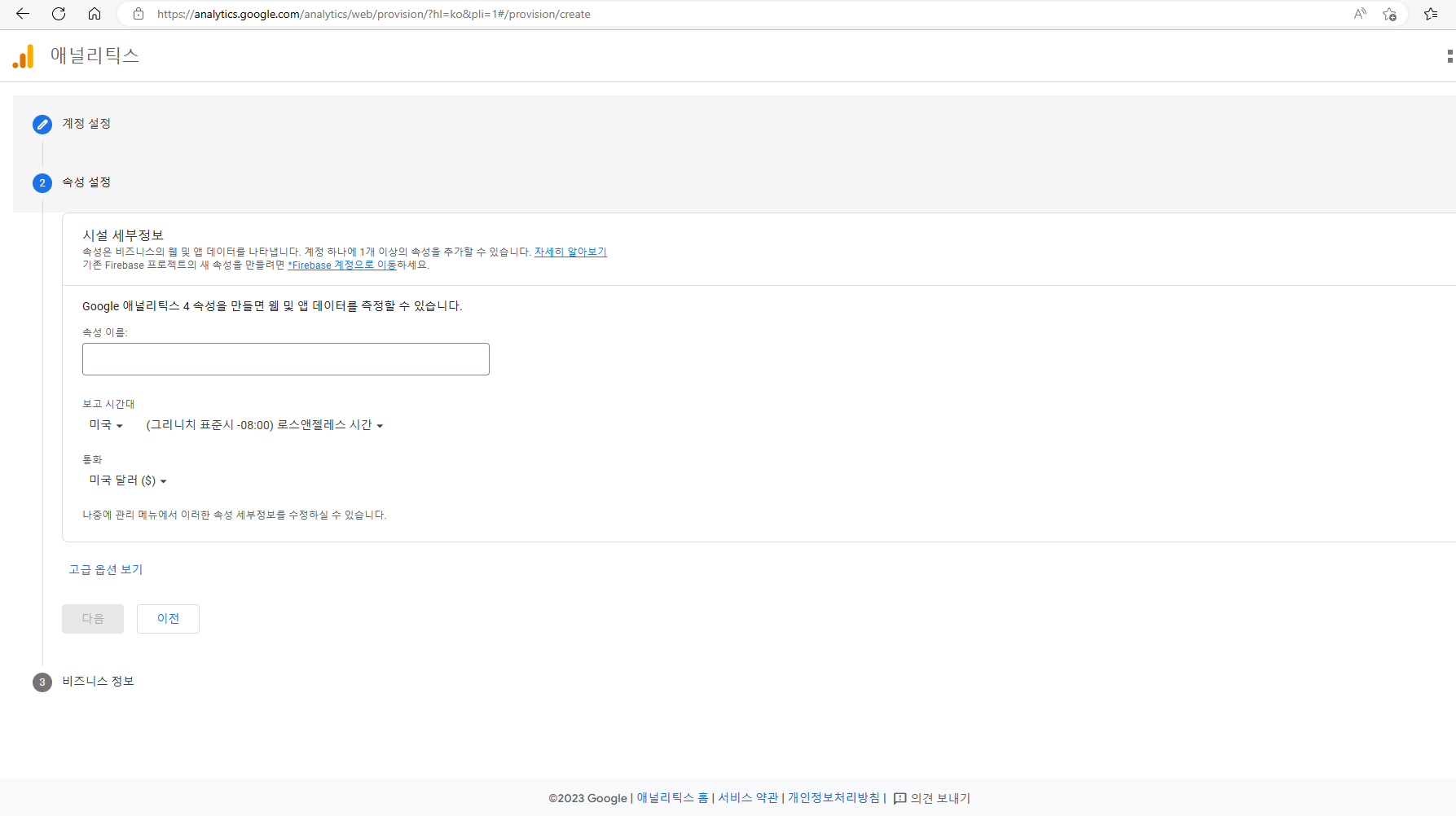 그리고 'Google 애널리틱스 4 속성과 유니버셜 애널리틱스 속성 둘다 만들기' 버튼을 눌러 주신 후 '다음'을 눌러 주세요.